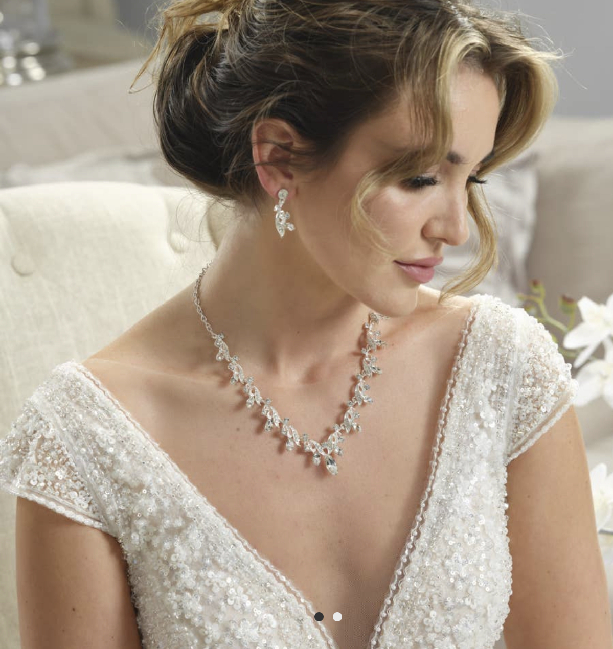 Bridal necklaces sweetv teardrop bridal jewelry set selver