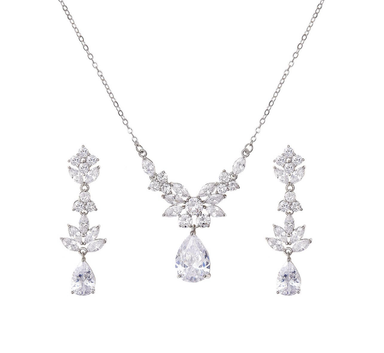 Bridal necklaces sweetv teardrop bridal jewelry set selver quantity