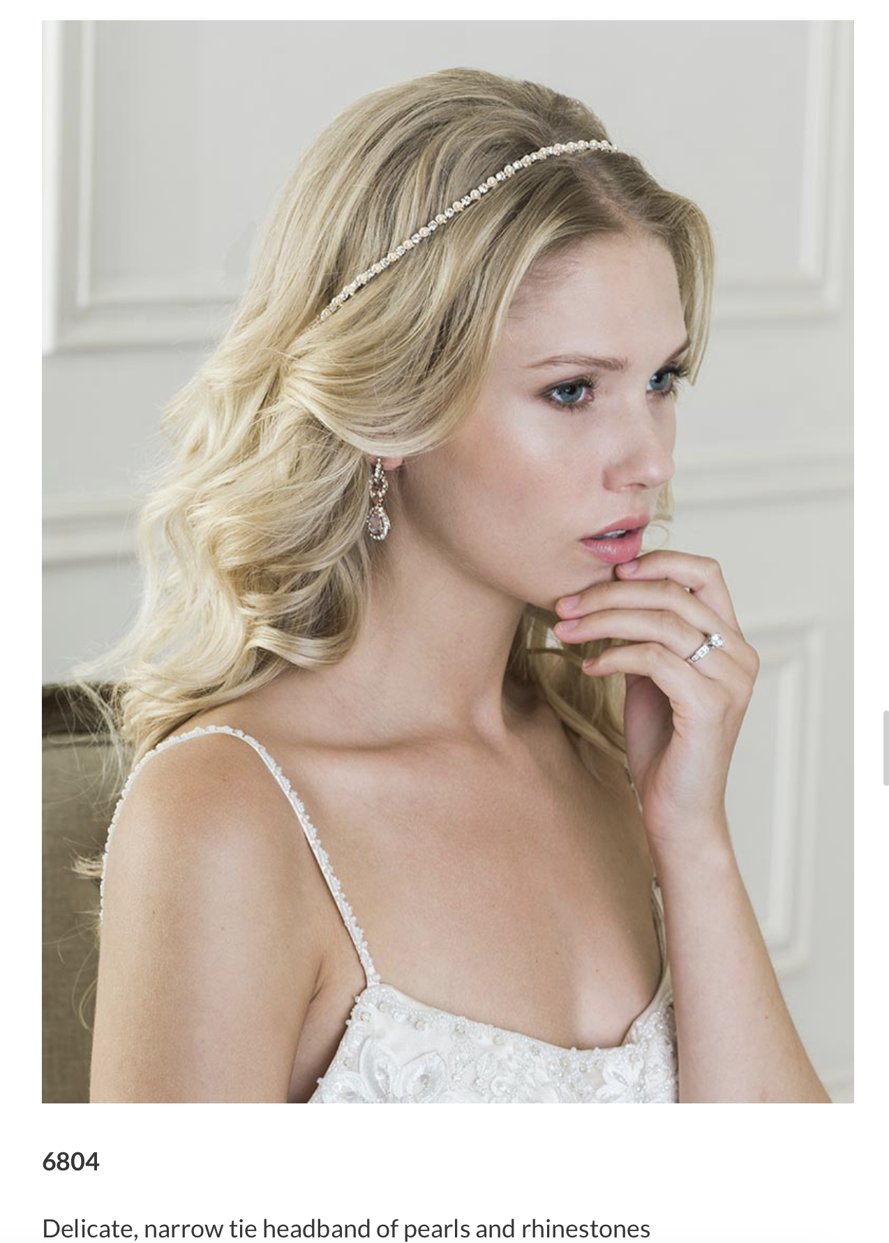 Featuring tiny glass pearls and clear rhinestones, this glittering tie headband beautifully complements a variety of gowns and may also be worn